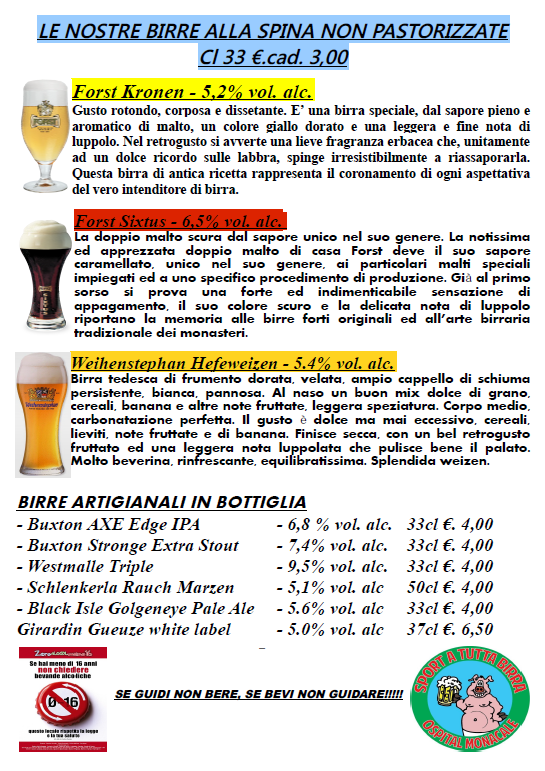 Per ulteriori info 329.2116872, facebook.com/sportatuttabirra.