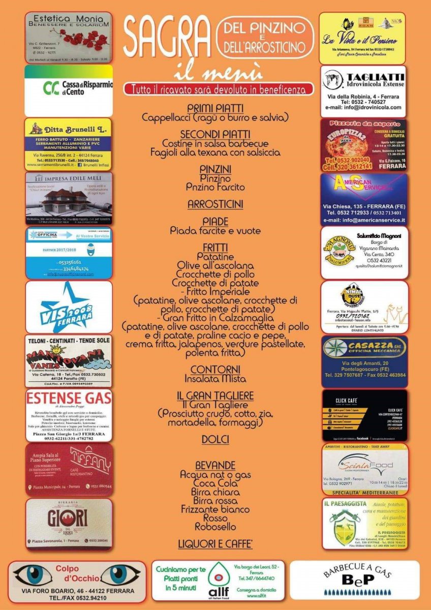 Dal 4 al 15 settembre 2019 a Ferrara spazio alla sagra del pinzino e dell'arrosticino, che si svolgerà presso il